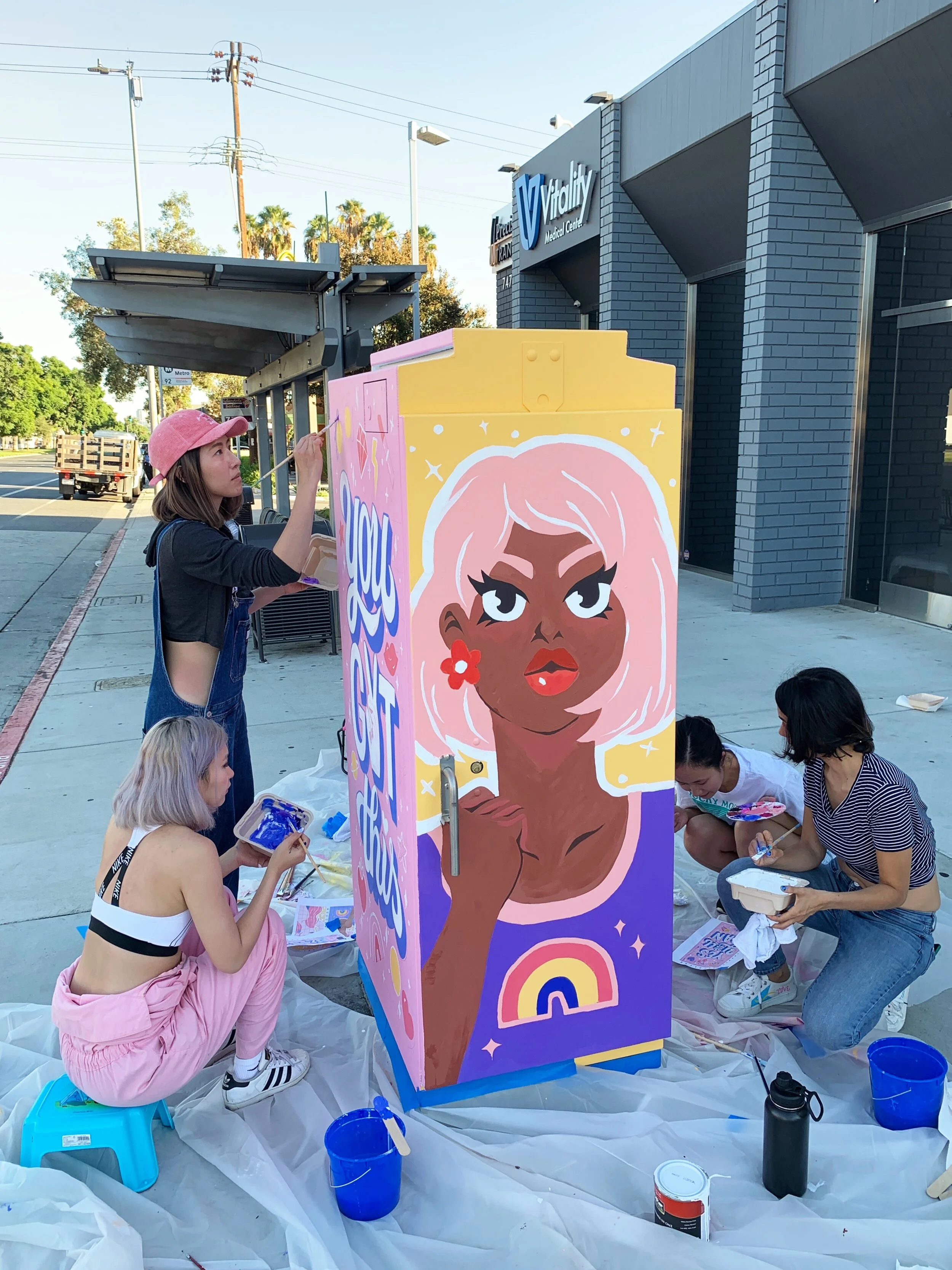 I was first introduced to painting murals by my artist friends! Here are some photos from the times I’ve helped them with their projects.